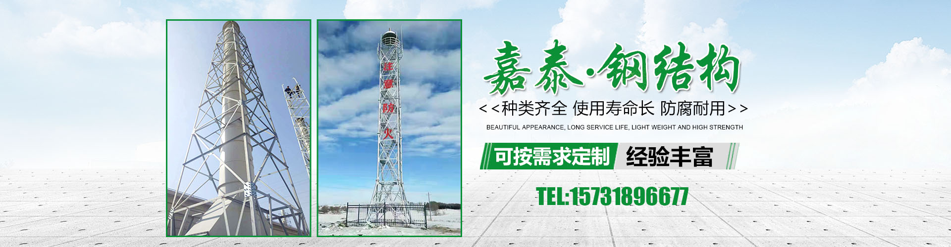 衡水嘉泰鋼結(jié)構(gòu)有限公司位于鐵塔制造之鄉(xiāng)-衡水市景縣廣川經(jīng)濟(jì)開發(fā)區(qū),石德、京九鐵路交匯處,距北京、天津、石家莊、濟(jì)南均在2小 時(shí)交通圈內(nèi),交通便利。公司主要產(chǎn)品有:避雷塔、監(jiān)控塔、瞭望塔、消防訓(xùn)練塔、電力架構(gòu)、樓頂工藝塔、廣播電視塔、煙囪塔、測風(fēng)塔 、電力塔、單管塔、雷達(dá)塔、仿生樹塔、氣象觀測塔、路燈桿,一體化基站、ETC龍門架等,是一家集設(shè)計(jì),生產(chǎn),運(yùn)輸,安裝,維護(hù)為一體的廠家。主要服務(wù)于鐵塔公司、通信三大運(yùn)營商、國防通訊,鐵路及森 ......